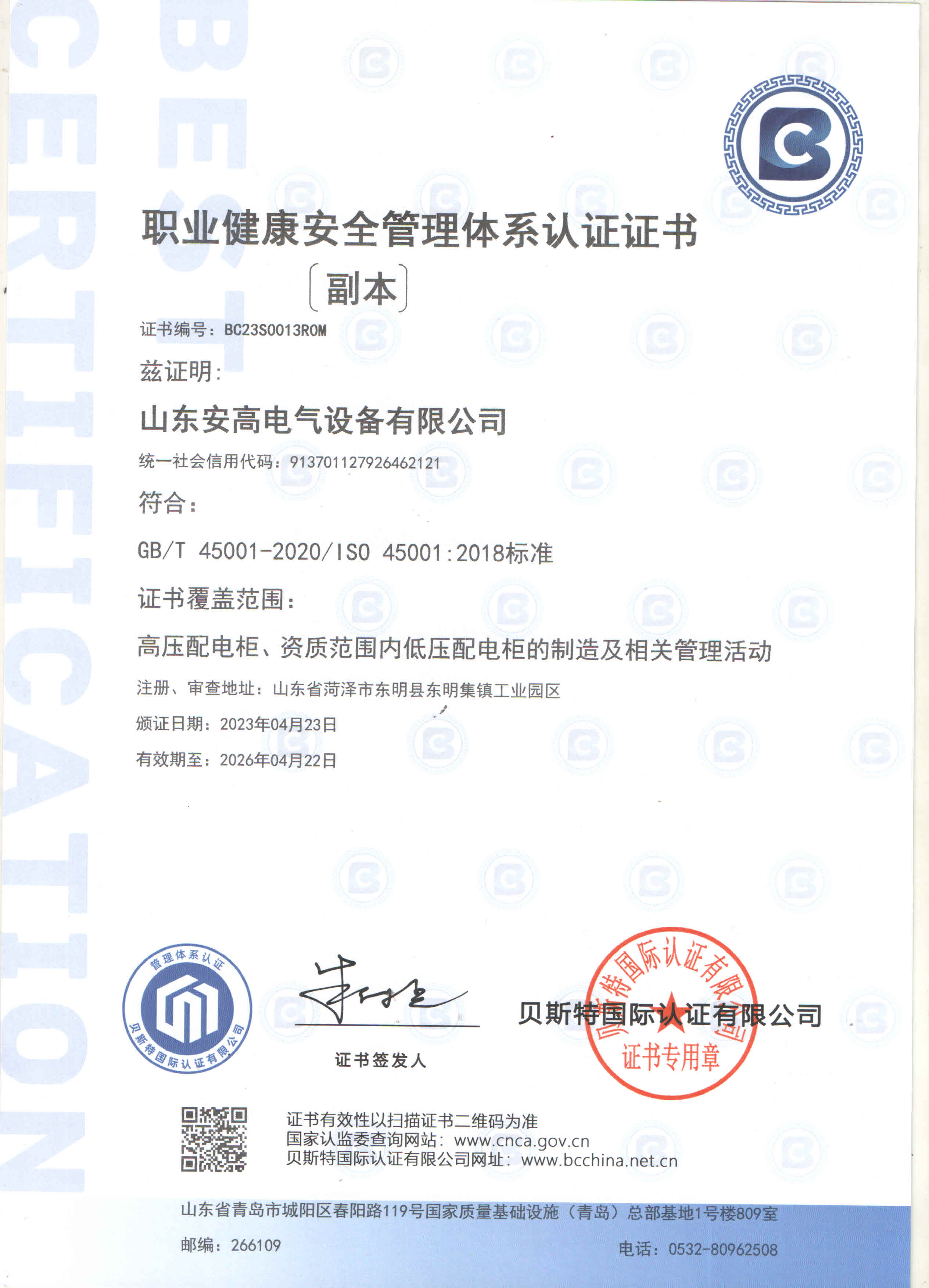 安高經(jīng)過了多年磨練,先后榮獲“守合同重信用企業(yè)”、“專精特新”中小企業(yè)、“質(zhì)量、服務(wù)、信譽AAA企業(yè)”、“國家合格評定質(zhì)量信得過產(chǎn)品”、“山東省高新技術(shù)企事業(yè)”等多項榮譽稱號。